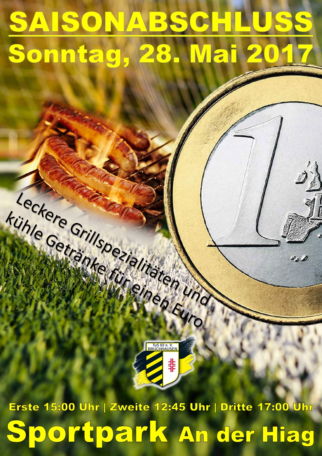 Alle Spieler, Betreuer, Eltern sowie Anhänger und Gönner des TuS Bruchhausen sind eingeladen den Saisonabschluss gemeinsam mit den Seniorenfußballern am 28. Mai 2017 im Sportpark An der Hiag zu feiern.